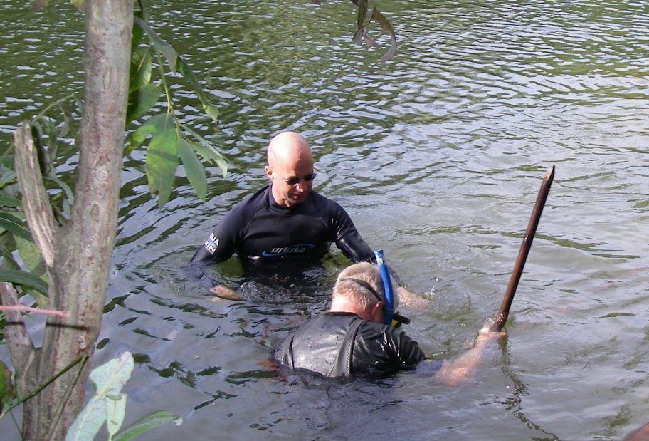 Nach der Arbeit setzten wir und in die Boote und übten Kehrwassermanöver - Paula, die sonst immer Kajak fährt - wollte sich ein wenig als Bugpaddlerin üben. Zunächst nahmen wir die "Kotztüte", die ja - ob ihrer Länge - eher schwerfällig dreht, dann stiegen wir um in den Wildwasser-Tandemcanadier des Vereins und sausten nur so in das kaum spürbare Kehrwasser an unserer Standard-Übungsstelle. Vom Kajak her weiß Paula genau wann und wie aufzukanten ist, so dass es ein reines Vergnügen war sich mit ihr in die Kurve zu legen.
